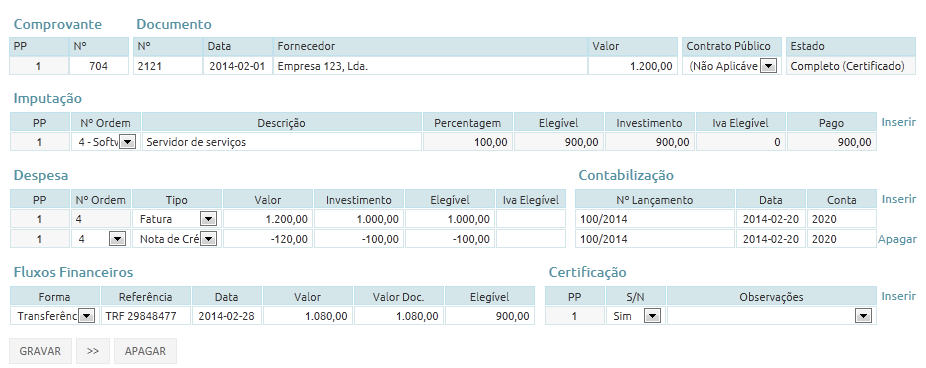 Nestas circunstâncias o comprovante foi dado como Completo (Certificado) porque o valor da Despesa está integralmente certificado.
